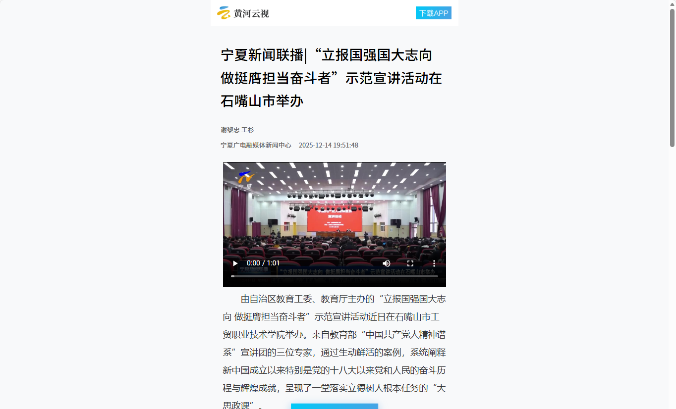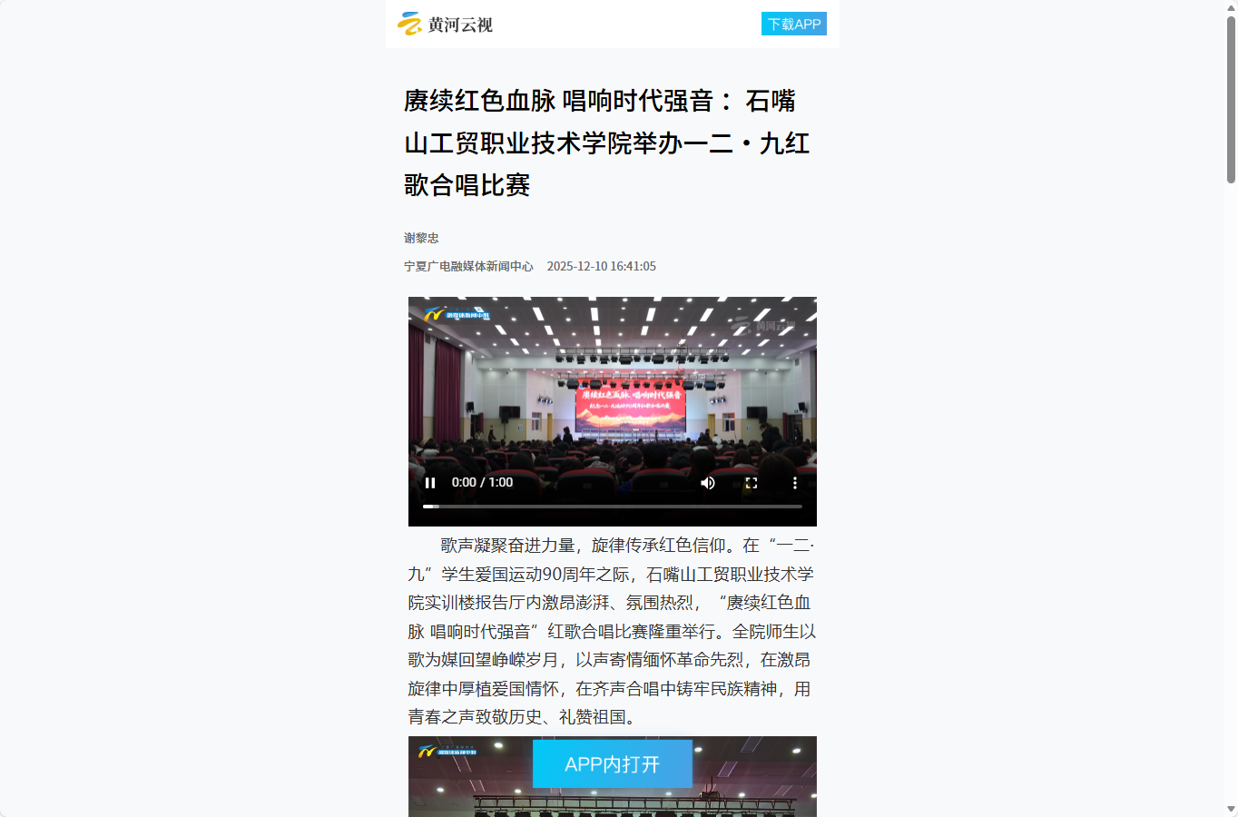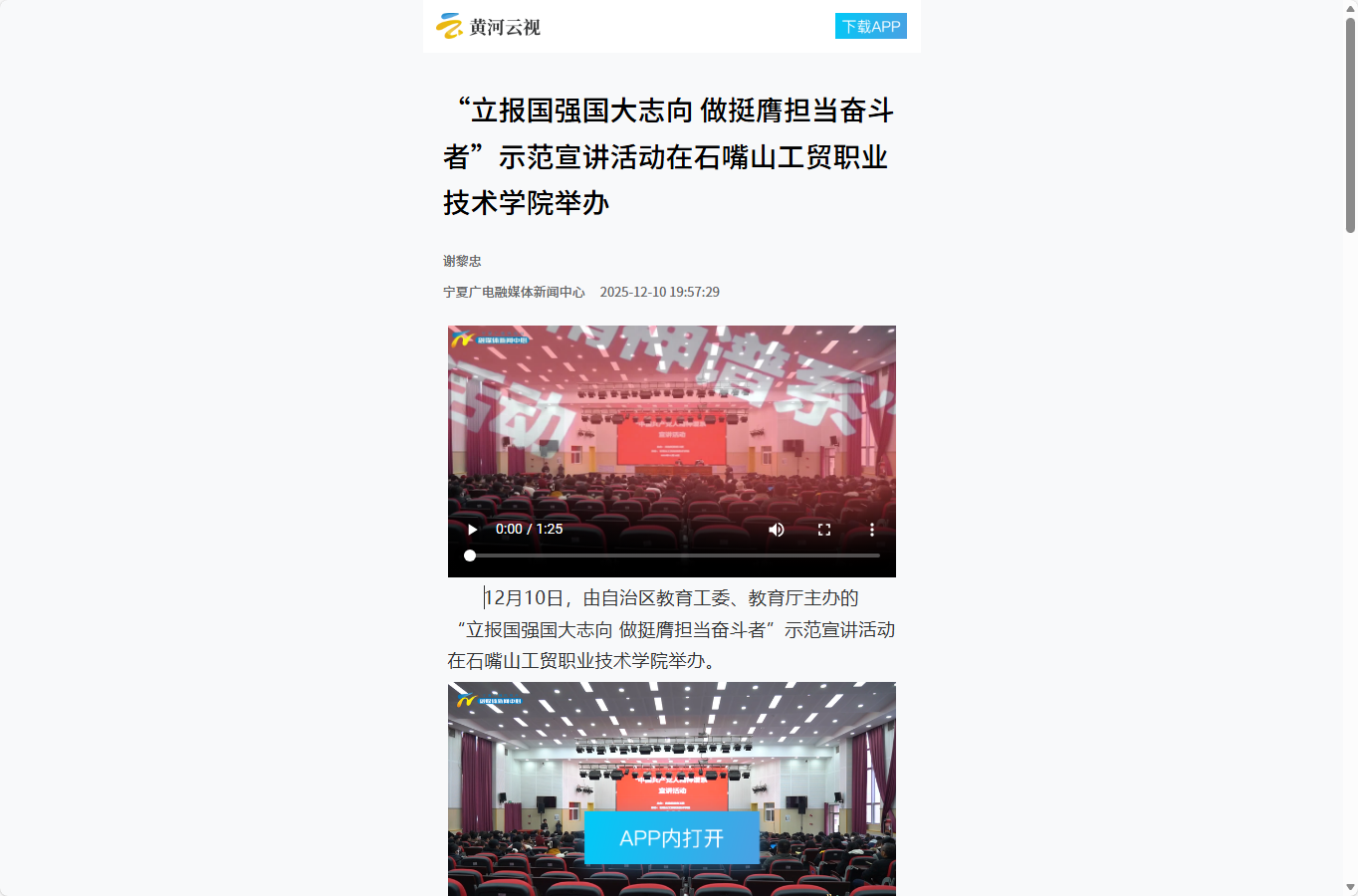 2025-12喜报 | 石嘴山工贸职业技术学院在全区第七届…近日,宁夏回族自治区第七届中华经典诵写讲大赛获奖名单正式揭晓,石嘴山工贸职业技术学院师生凭借深厚的文化底蕴、精湛的表现技艺…