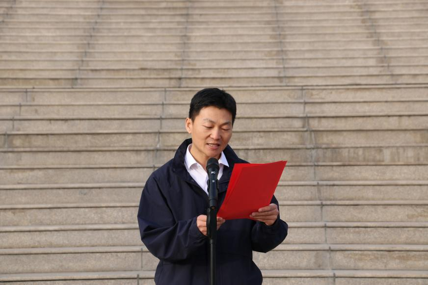 国歌奏毕,马克思主义学院副主任范青以《缅怀革命先烈 赓续红色精神》为主题进行演讲。他带领全体师生重温了那段烽火连天的岁月:“九三阅兵中,80面抗战英模战旗方队承载着约2000万烈士的牺牲,其中仅196万烈士留有姓名。当杨靖宇将军的战旗飘过天安门时,我仿佛看到他在林海雪原中啃食树皮棉絮的坚毅身影;想起虎门销烟的林则徐、黄海殉国的邓世昌,想起嘉兴南湖红船的星火、长征路上的风雪,还有狼牙山五壮士纵身悬崖、江姐酷刑守秘、董存瑞舍身炸碉堡……这些,都是我们落实立德树人根本任务‘活的教材’。”