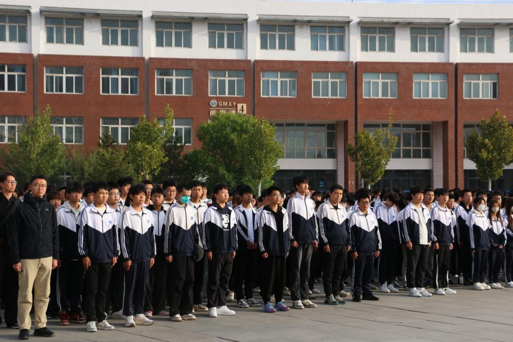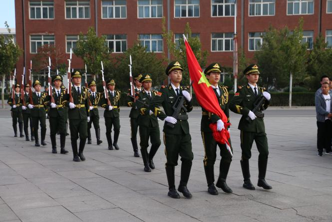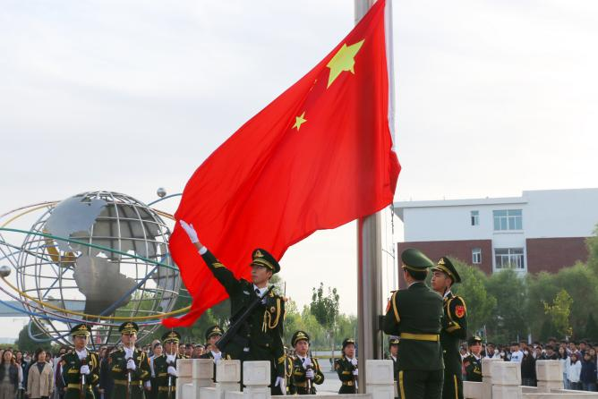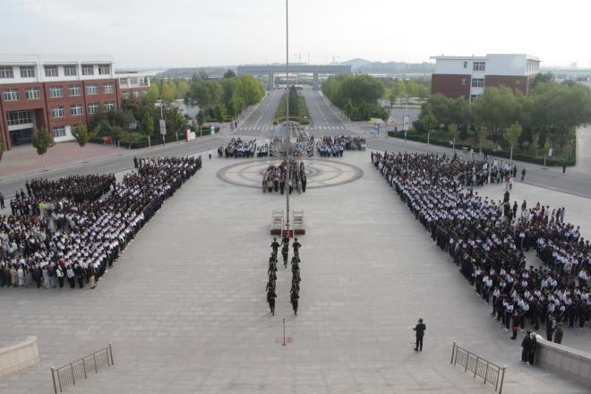 9月29日清晨8时整,中心楼前广场千余名师生身着整齐服装,迎着初秋微凉的晨风