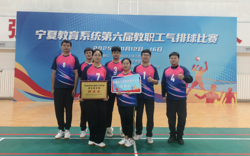 10月12日-16日,在宁夏职业技术大学、银川职业技术学院举办的宁夏教育系统第六届教职工气排球比赛中,学院教职工混合组气排球队凭借精湛技艺与顽强斗志,在30支参赛队伍的激烈角逐中脱颖而出,获得第五名好成绩!展现我院教职工体育风采!