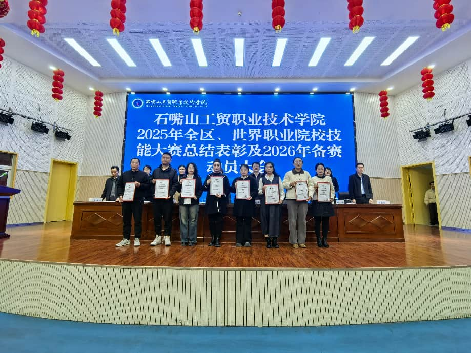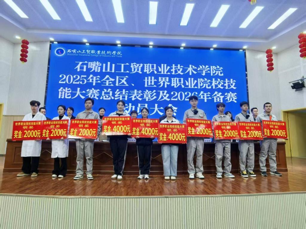 大会通报了2025年石嘴山工贸职业技术学院在全区职业院校技能大赛和首届世界职业院校技能大赛中的取得各项成果。在2025年技能大赛中,我院斩获世界职业院校技能大赛银奖1项、铜奖3项,赛项覆盖“教育与体育”“汽车制造与维修”“机电设备安装与运维”“生态保护与环境治理”四大赛道,创下建校以来在职业院校技能大赛中的最佳战绩。