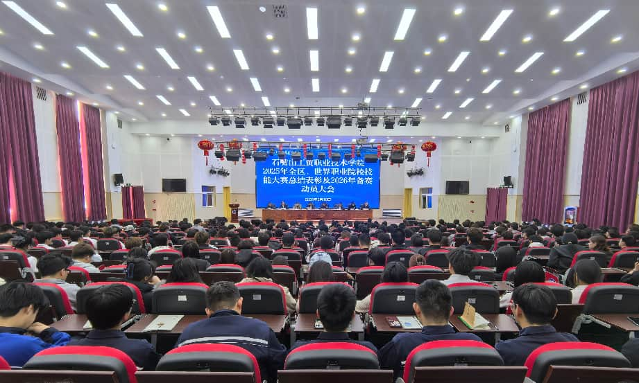 3月18日,石嘴山工贸职业技术学院隆重召开“2025年全区、世界职业院校技能大赛总结表彰及2026年备赛动员大会”,学院党委副书记、院长何秉海主持会议,党委书记宁晓娟出席会议并发表重要讲话,领导班子全体成员、各院系及职能部门负责人、2025年世界职业院校技能大赛获奖师生代表、2026年备赛团队师生共计400余人参与本次大会。