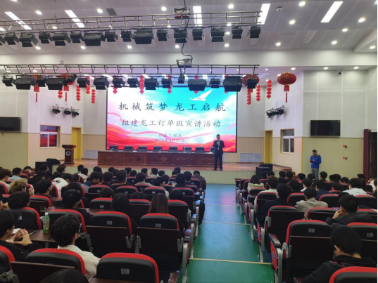 活动中,学院机械工程系负责人介绍了订单班的重要意义及往届订单班取得的显著成效。上海龙工企业负责人围绕企业文化、经营理念及校企联合培养模式进行了详细介绍。企业代表与同学们进行了面对面沟通交流,就订单班的课程设置、职业发展路径等问题进行耐心解答。现场气氛活跃,同学们踊跃咨询,有意向加入订单班的学生同步进行了现场报名。
