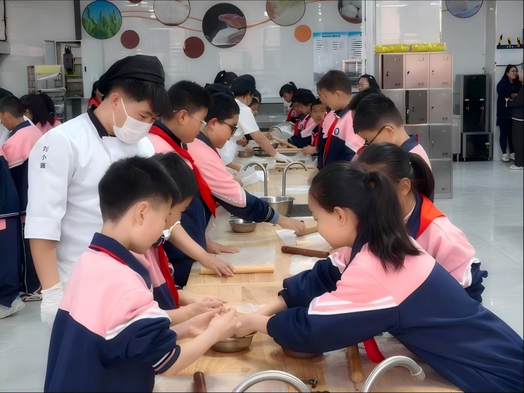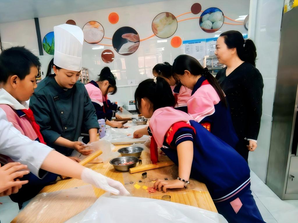 在生命健康星火馆,同学们探索人体奥秘,了解身体结构与健康常识,感受生命科学魅力;在智能制造车间,自动化生产线与工业机器人精准作业,让同学们初步感知工业自动化技术与相关职业内涵;在化学实验室星火馆,老师结合化工生产模型讲解安全知识,演示心肺复苏、应急防护等实操技能,将生产规范与急救知识融为一体,提升学生安全素养;在食品检验星火馆,大家动手参与小饼干制作,体验食品加工与质量检测基本流程,感受食品专业的实用性与趣味性。
