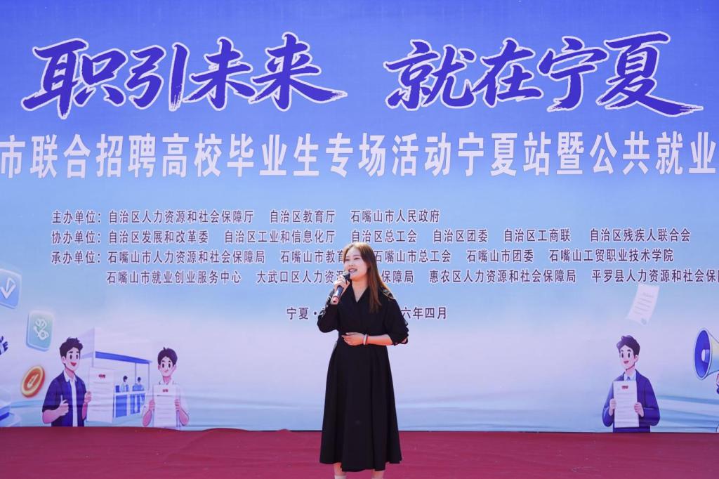 本次活动由宁夏回族自治区人力资源和社会保障厅、教育厅、石嘴山市人民政府联合主办,石嘴山工贸职业技术学院承办,自治区多部门协同助力,以“职引未来 就在宁夏”为主题,聚焦高校毕业生就业需求,将优质岗位与就业服务直接送到校园、送到学生身边。