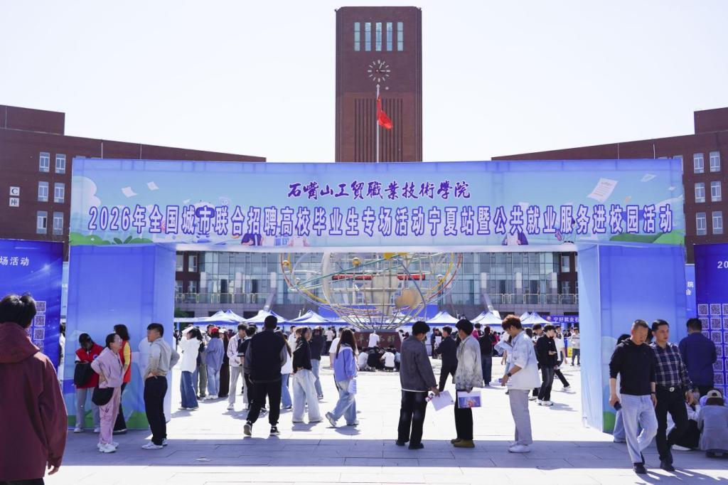 4月17日,2026年全国城市联合招聘高校毕业生春季专场活动宁夏站暨公共就业服务进校园活动在石嘴山工贸职业技术学院中心广场盛大举行。现场人头攒动、气氛热烈,区内外193家优质企业、近5000名求职者齐聚一堂,奏响青春就业奋进曲,为高校毕业生搭建起精准高效的求职对接平台。