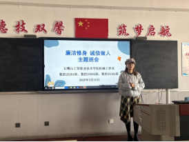 机械工程系团委牵头,组织各班级开展“廉洁修身、诚信做人”主题班会,举办廉洁主题黑板报评比和“清风润校园,廉洁育初心”主题征文比赛,通过案例讲解、视频观看、学生发言等形式,引导学生树立正确价值观,营造崇廉尚洁的校园文化氛围。