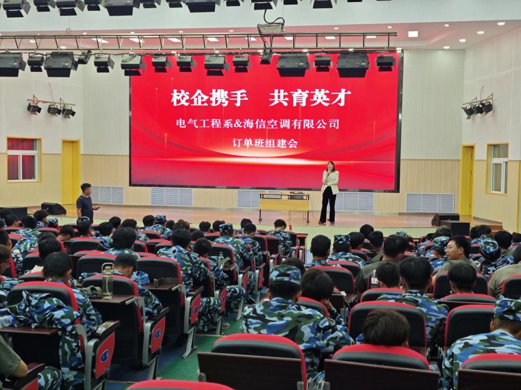 2025年9月19日,石嘴山工贸职业技术学院电气工程系与奇瑞控股集团有限公司、海信空调有限公司在公共实训中心报告厅隆重举行订单班组建会。校企三方代表、电气工程系师生代表齐聚一堂,共同开启“校企协同、定向培养”的人才培育新篇章。