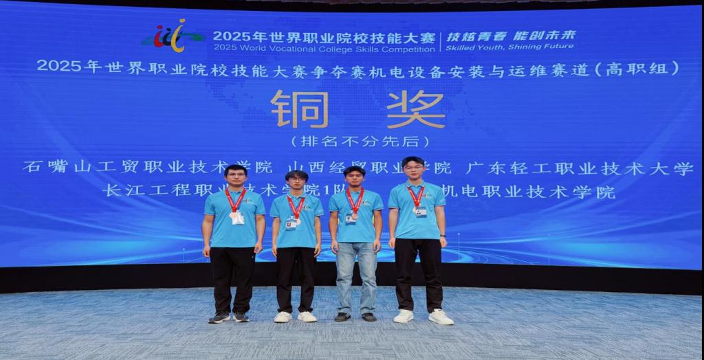 这份铜牌,是学子们放弃暑假、顶着酷暑的坚守,是师生们攻克技术难关、并肩作战的见证。它不仅是对 4 名同学的肯定,更是我校深化职业教育改革、强化实践教学的生动体现。未来,电气工程系将以此次大赛为契机,继续打磨技能人才培养模式,为社会输送更多不怕吃苦、本领过硬的技术人才,让“匠心筑梦”的故事在更多学子身上延续。