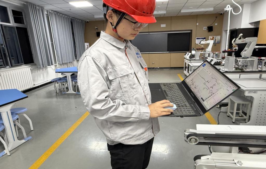 高强度的训练中,身体的疲惫与心理的压力接踵而至。长时间站立操作,让学子们的腰背贴满了止痛膏药;精准调试需要高度集中,有人练到眼睛发酸,滴上眼药水继续;为了应对比赛中的突发状况,指导团队还专门模拟了设备突然断电、图纸信息缺失等极端场景,一次次打磨学生的心理素质。“记得有次模拟赛,我负责的 PLC 程序突然出了问题,当时脑子一片空白,是雷老师在旁边轻声说‘别急,按流程查’,才让我慢慢冷静下来。”马文说,正是这份鼓励,让他们在赛场上多了一份底气。