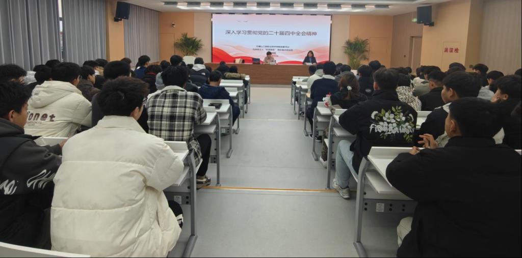 宁晓娟书记紧紧围绕党的二十届四中全会精神,从如何学、学什么、怎么干三个方面,带大家深入学习了党的二十届四中全会精神实质,从经济社会发展的指导思想、重大原则、主要目标等方面进行了全面解读。她强调,全体师生要深刻领会全会精神的丰富内涵和核心要义,自觉把思想和行动统一到习近平总书记重要讲话和全会精神上来,坚定信心、凝心聚力、真抓实干。