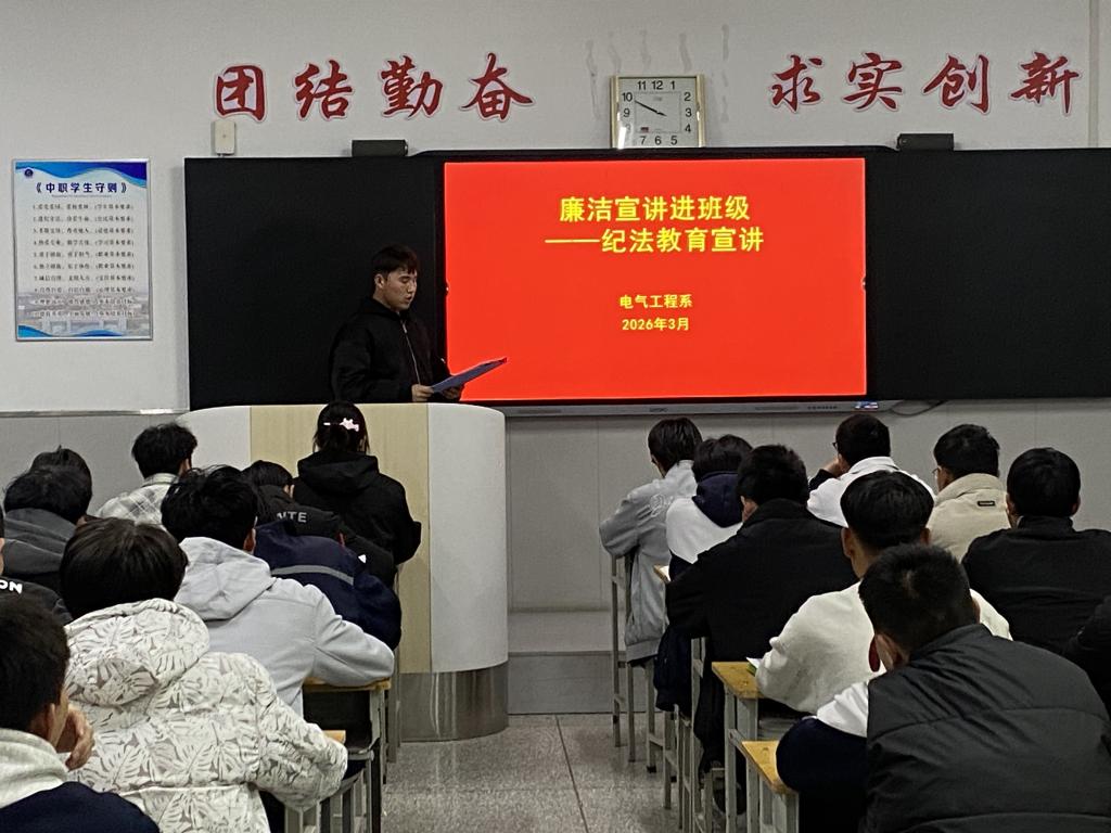 2026年3月,电气工程系党支部以“清风润校园,廉洁育初心”为主题,扎实开展廉政教育月系列活动。从理论铸魂到警示震慑,从文化浸润到实践践行,再到长效固化和总结提升,活动环环相扣、层层深入,构建起系统化、特色化的廉政教育体系,真正做到了让廉洁教育“走心、走深、走实”。