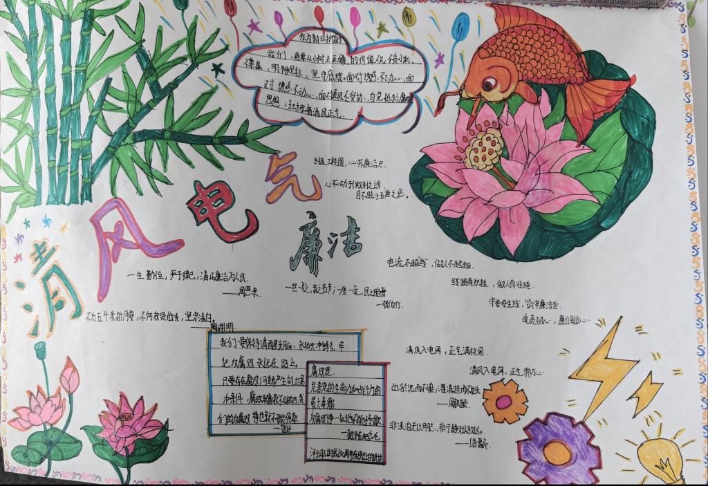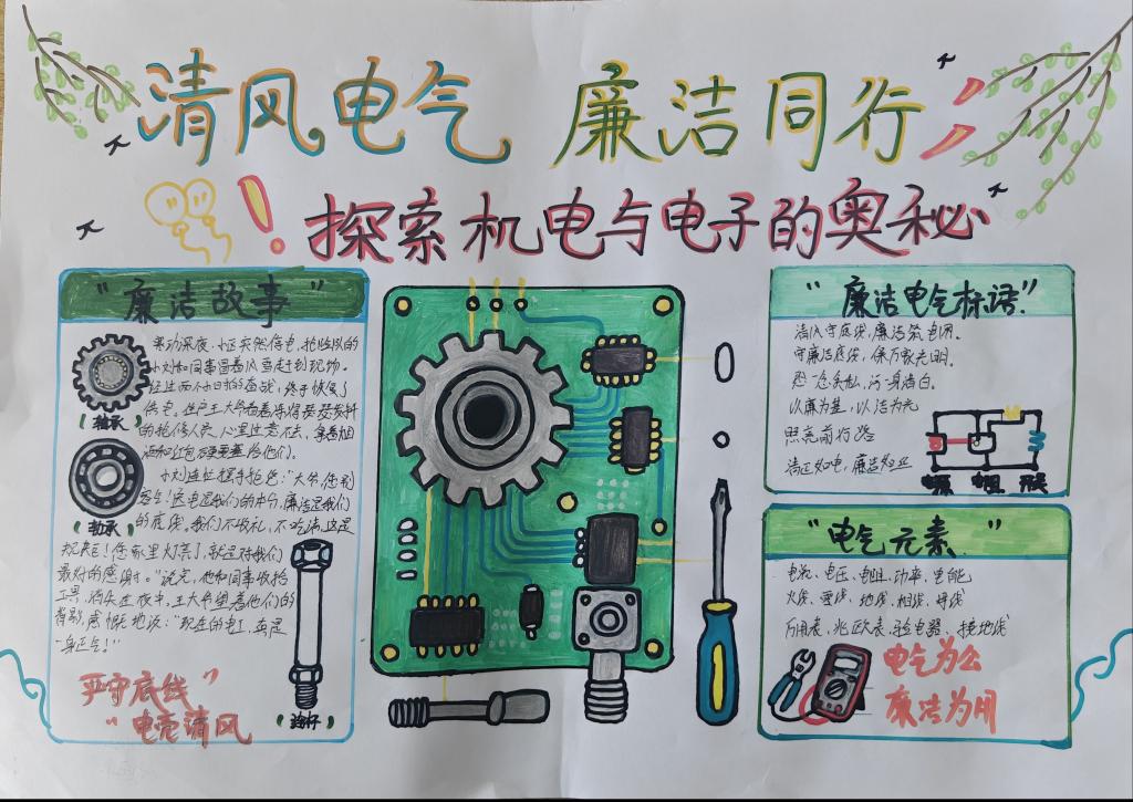 文化浸润,清风氛围日益浓厚。支部致力于推动廉洁文化从“活动化”向“阵地化”转变,在1-2号教学楼连廊打造固定廉政文化阵地,组织“清风电气”廉政文化创作展,征集书画、手抄报、短视频等作品,融入电气专业,形成特色廉洁标语。全系上下“处处见廉、时时思廉”的育人环境初步形成。