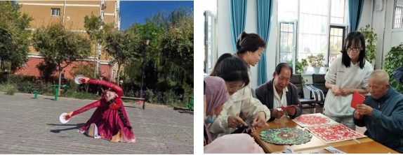 在社区活动中心,一场充满民族风情的舞蹈互动活动点燃了现场氛围。太西社区舞蹈队与商贸管理系学生舞蹈团队联袂献上精心排练的民族舞蹈节目,优美的舞姿、鲜明的民族特色赢得在场人员阵阵掌声。演出结束后,商贸管理系的师生们在社区活动中心开展了“剪纸传情,共话团结”教学活动。师生们提前准备了红色彩纸、剪刀、刻刀等工具,并精心设计了融合民族团结与双节元素的剪纸图案,过程中,针对老人动作迟缓、视力不佳等情况,师生们耐心协助固定纸张、调整剪刀角度,手把手教老人剪出流畅线条。不一会儿,老人们纷纷展示出自己的剪纸成果,脸上洋溢着成就感。大家互相欣赏作品,交流剪纸心得,在体验传统非遗技艺的同时,进一步增进了彼此的情感联结,让民族团结的氛围在指尖的创作中愈发浓厚。