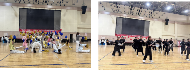 在热烈的氛围中,团体操决赛正式开启。经过初赛选拔,共有14支班级代表队晋级决赛。各参赛队伍精神饱满、动作整齐,结合富有创意的编排与动感音乐,呈现出一场场精彩纷呈的团体操表演。《蛋炒饭》《向快乐出发》《一路花开》《Barbie girl》《We hot》等节目轮番上演,既有青春活力的张扬,也有团结协作的展现,赢得现场阵阵掌声。