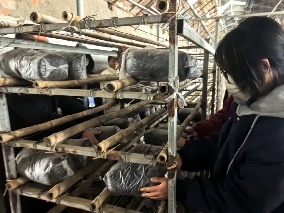 实践教学环节在大武口区菌缘产业园(宁夏食用菌资源与种质创新工程技术研究中心)开展。学生在教师指导下,亲手操作了香菇菌棒的制棒、灭菌、接种、培养及出菇管理等完整生产流程。通过深入企业观摩和现场实操考核,同学们将课堂所学与生产实际紧密对接,切实提升了动手能力和解决问题的能力。