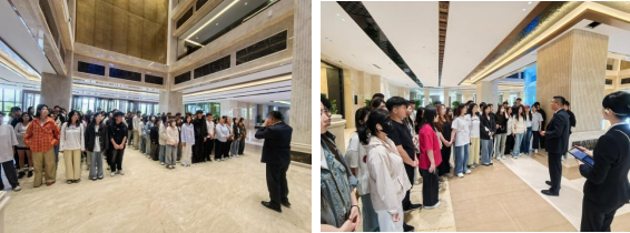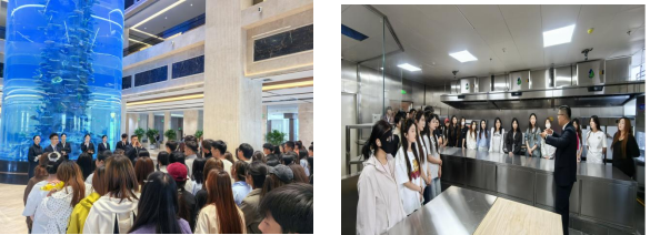 活动中,酒店工作人员带领学生依次参观前厅接待、客房服务、餐饮服务、后厨操作等核心功能区域,系统讲解酒店各业务板块运营流程、岗位职责与工作标准。酒店各部门负责人结合岗位实际,详细介绍行业技能要求、职业素养规范及人才发展方向,学生们认真聆听、主动交流,围绕行业发展现状、实习岗位需求、个人职业规划等问题与酒店方深入探讨,现场互动热烈。