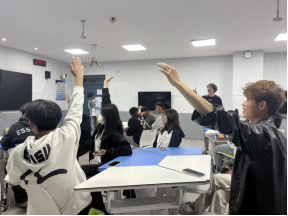 互动环节将现场气氛推向高潮。“趣味自我介绍”环节,同学们用“姓名+一件趣事”的创意方式接力介绍,笑声掌声此起彼伏;“听歌识曲”游戏中,熟悉的旋律引发阵阵欢呼,同学们在音乐中找到了志趣相投的伙伴。新生围绕“我最期待的一门课”“家乡美食分享”“大学生活规划”等话题展开相互提问交流。辅导员和学长学姐们也深入各小组,耐心解答同学们在专业学习、校园生活、社团活动等方面的疑问,为他们排忧解惑。