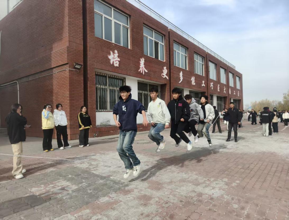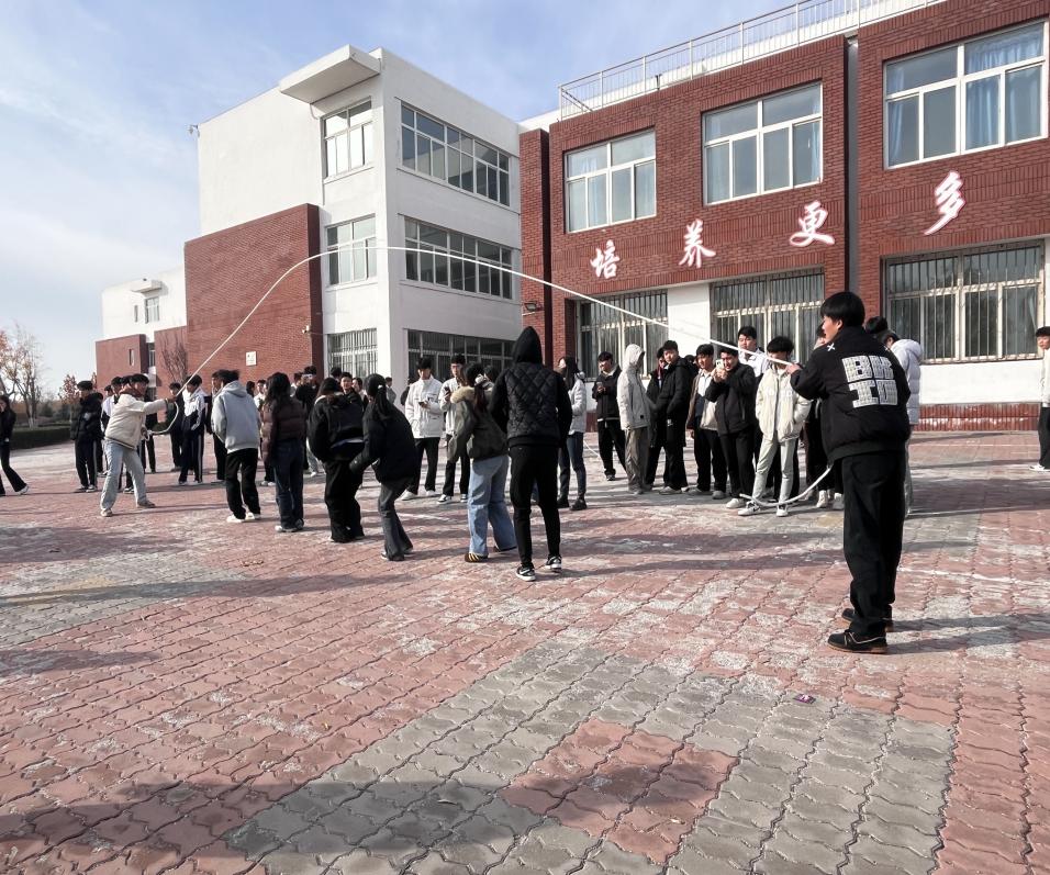 近日寒气袭人,比赛场地却热潮涌动,同学们跃跃欲试的身影在冬日阳光下更显活力四射。赛前热身,同学们紧握跳绳,目光坚毅,交流技巧间团队默契渐生,团结之力悄然凝聚。哨声乍响,比赛开始。大绳仿若银蛇狂舞,呼啸生风。同学们恰似轻燕穿梭,敏捷灵动。有的班级稳扎稳打,节奏舒缓而稳健;有的班级则爆发力十足,速度超人,令旁观学生惊叹。挥舞的大绳,跃动的身影,每位同学脸上都洋溢着灿烂的笑容,每位同学心中都秉持着为集体争光添彩的信念,比赛场地一时间充斥着欢声笑语,热闹非凡。