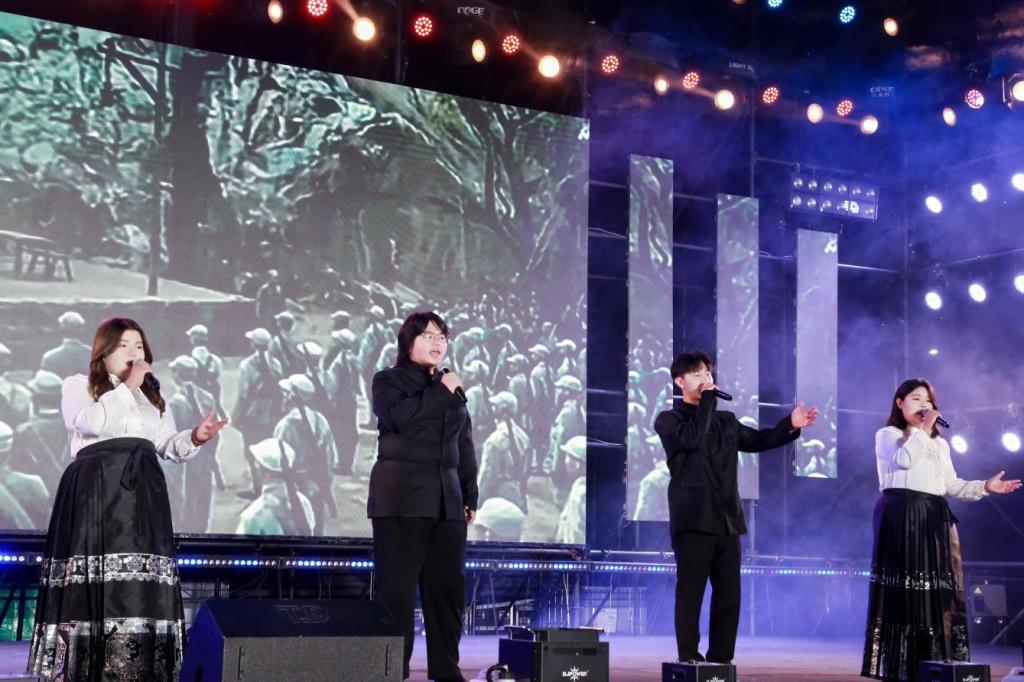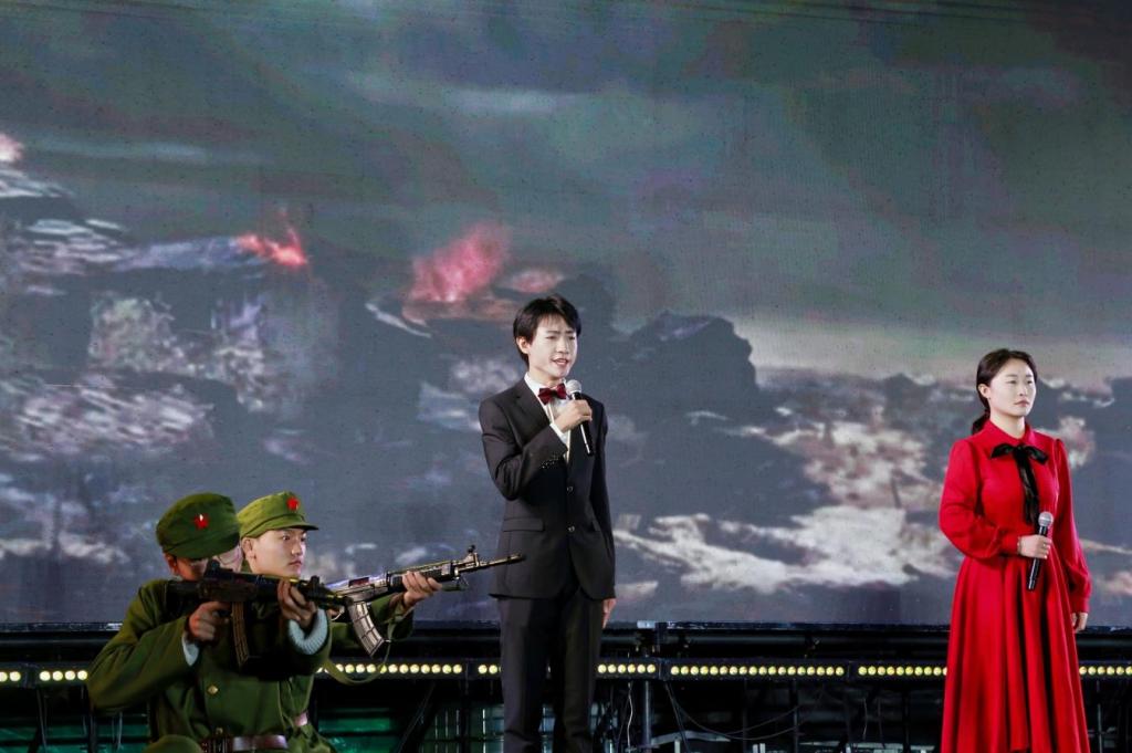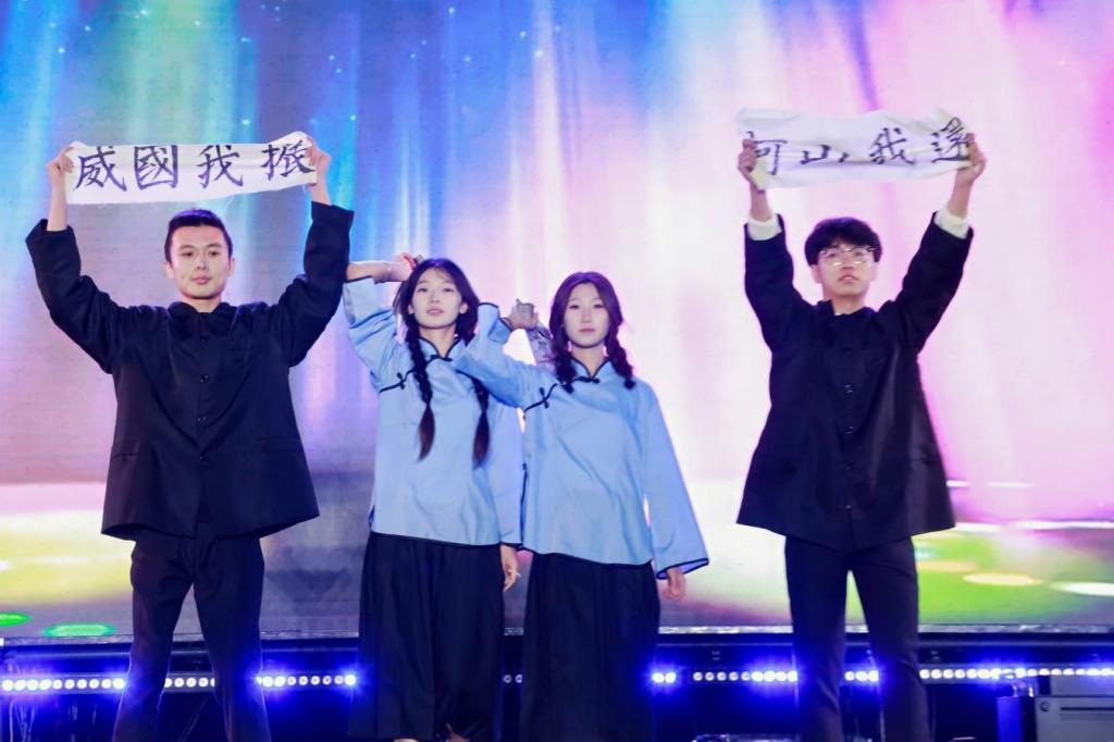 第一篇章·青青子衿,志怀家国。晚会以舞蹈《奔向青春》拉开序幕,商贸管理系的同学们用动感的舞姿展现了青春的活力晚会以舞蹈《奔向青春》拉开序幕,商贸管理系的同学们用动感的舞姿展现了青春的活力与激情。紧接着,中华经典诵读社带来的情景朗诵《红杜鹃》,以深情的语调诉说着对祖国的热爱与敬仰。由学院合唱团带来的合唱《山河》带领全体师生共同回溯往昔峥嵘岁月,感受先辈们以信仰为帆、以担当为桨的逐梦征程,不仅展现了学子们的多才多艺,更传递出了他们对家国情怀的深刻理解与传承。由大学城派出所带来的歌曲《我们的歌(反诈版)》,以轻快的歌曲串烧引导全体师生提升反诈意识,保护自身安全。