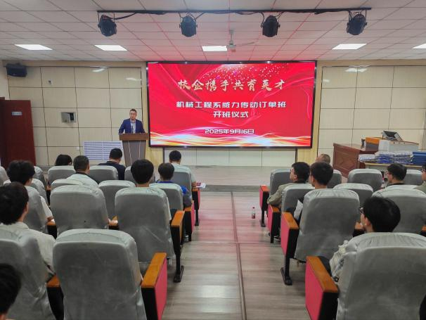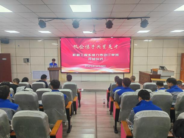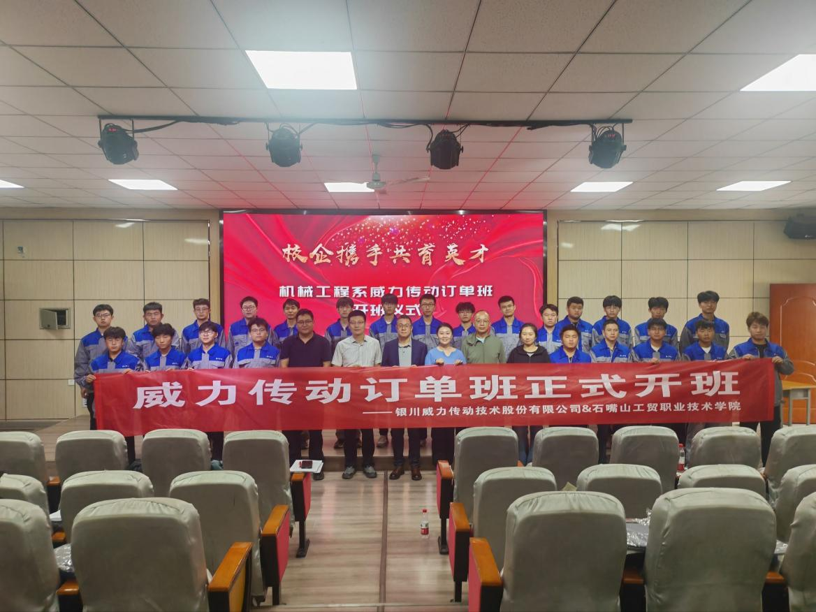 9月16日上午,石嘴山工贸职业技术学院与银川威力传动技术股份有限公司校企合作项目——“威力传动订单班”开班仪式在学院3号楼报告厅隆重举行。