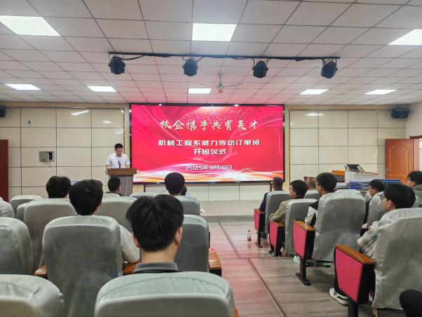 机械工程系主任兰晏文在致辞中回顾了首届订单班的丰硕成果,他表示,订单班培养是双方深化产教融合、协同育人的重要里程碑,旨在共同培养贴合高端装备制造产业需求的高素质技术技能人才。同时,他向新一届“威力传动订单班”学子提出三点殷切期望:一要珍惜“学生”与“准员工”的双重身份,以企业标准严格要求自己;二要锚定“技能核心”,深耕机械设计、传动系统调试等关键技术;三要涵养“职业素养”,成长为懂技术、懂行业的复合型人才。企业代表周亮在致辞中表示,公司将全力支持订单班建设,通过提供实践平台、技术导师和优质资源,与学院共同打造一条高效的人才输送通道,实现学生、学校与企业三方共赢。