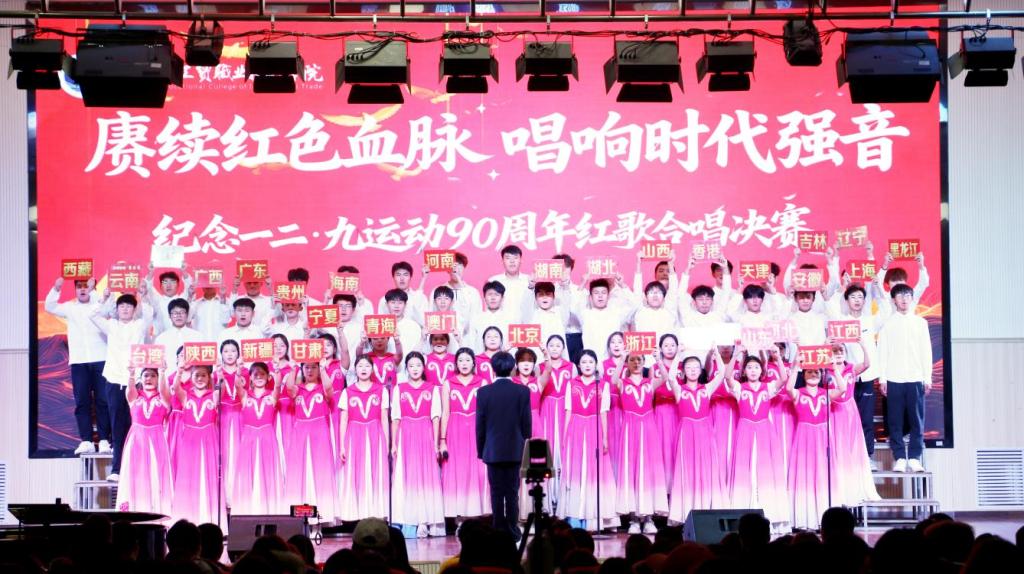 为纪念“一二·九”学生爱国运动90周年,弘扬爱国主义精神,激发青年学子的爱国热情与责任担当,丰富校园文化生活,12月9日,石嘴山工贸职业技术学院“赓续红色血脉,唱响时代强音”红歌合唱决赛在实训楼报告厅隆重举行。本次活动由学院团委主办、学生会承办,经过班级初赛、院系复赛的层层选拔,5支院系代表队脱颖而出登上校级决赛舞台,与特邀嘉宾共同为现场师生呈现了一场震撼人心的红色视听盛宴。