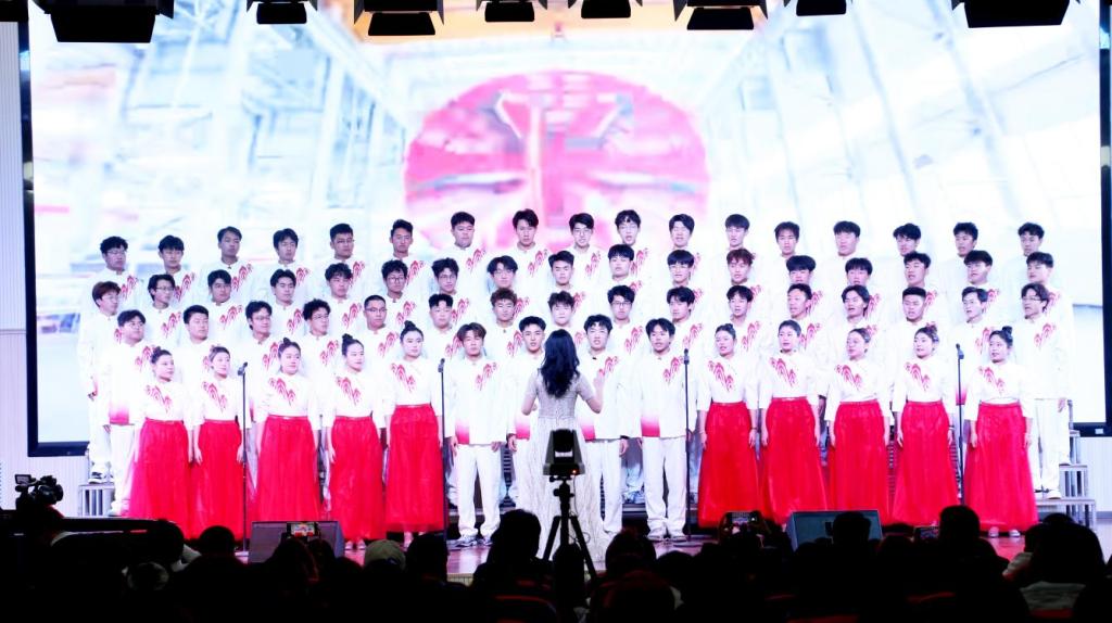 随后,电气工程系、商贸管理系、机械工程系、新型材料现代产业学院、信息工程系等5支院系代表队依次登台,以整齐的队形、嘹亮的歌声展现工贸学子的青春风采。《祖国不会忘记》《走向复兴》《我爱你中国》等一首首耳熟能详的红歌轮番上演,各代表队创新融入情景演绎、手语编排、多媒体背景、特色道具等元素,将歌曲内涵与爱国情感深度融合。其中,信息工程系的《保卫黄河》气势磅礴,新型材料现代产业学院的《紫荆花盛开》温情动人,机械工程系的《在灿烂阳光下》充满奋进力量,赢得现场观众阵阵掌声。