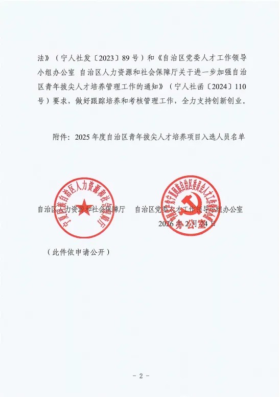 近日,自治区人力资源和社会保障厅、自治区党委人才工作领导小组办公室印发了《关于公布2025年度自治区青年拔尖人才培养项目入选人员名单的通知》,石嘴山工贸职业技术学院教师吴玉鹏入选2025年度自治区青年拔尖人才培养项目。
