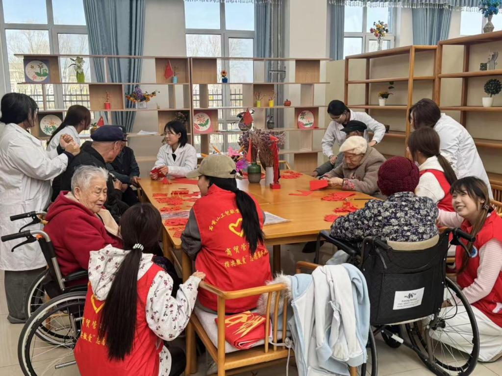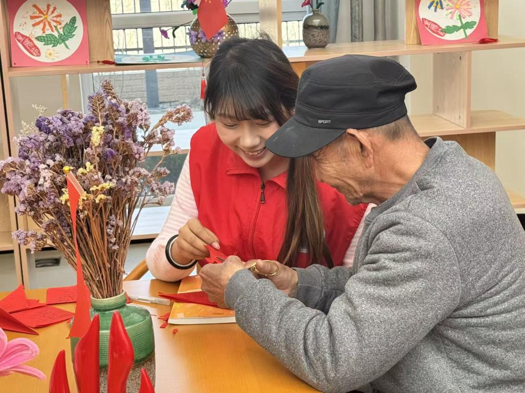 此外,志愿者们还为老人们提供轻柔按摩,缓解身体疲惫。非遗剪纸展示环节更是点燃了老人们的兴趣,志愿者们现场演示剪纸技艺,手把手指导老人们体验剪纸乐趣,一张张红纸在指尖翻飞,化作寓意吉祥的图案,老人们脸上洋溢着幸福的笑容。