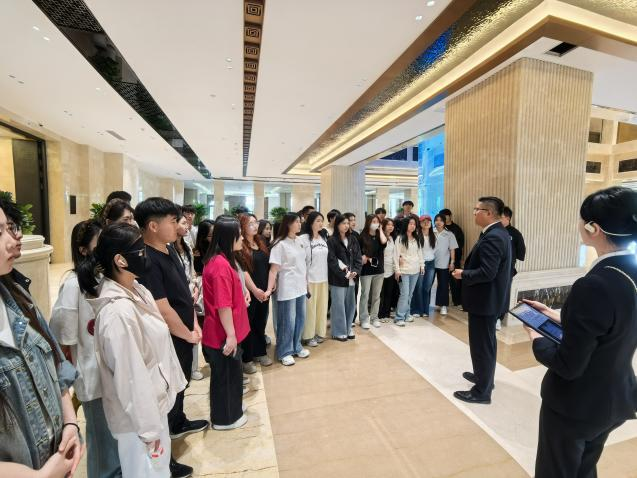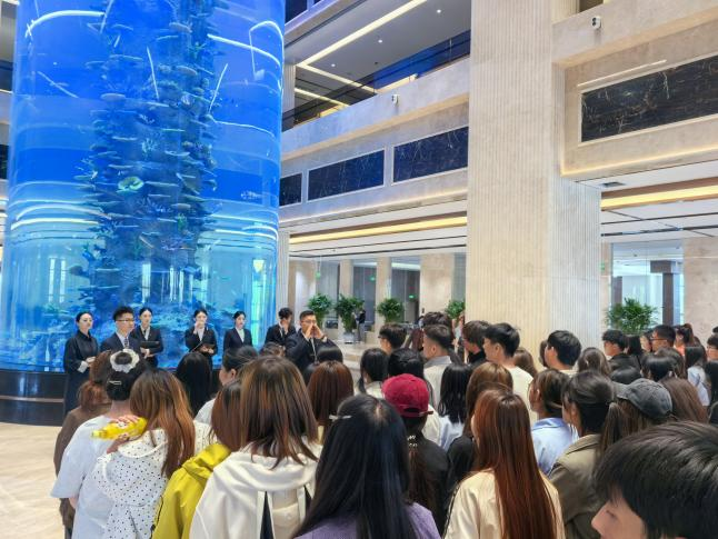 活动中,酒店工作人员带领学生依次参观前厅接待、客房服务、餐饮服务、后厨操作等核心功能区域,系统讲解酒店各业务板块运营流程、岗位职责与工作标准。酒店各部门负责人结合岗位实际,详细介绍行业技能要求、职业素养规范及人才发展方向,学生们认真聆听、主动交流,围绕行业发展现状、实习岗位需求、个人职业规划等问题与酒店方深入探讨,现场互动热烈.
